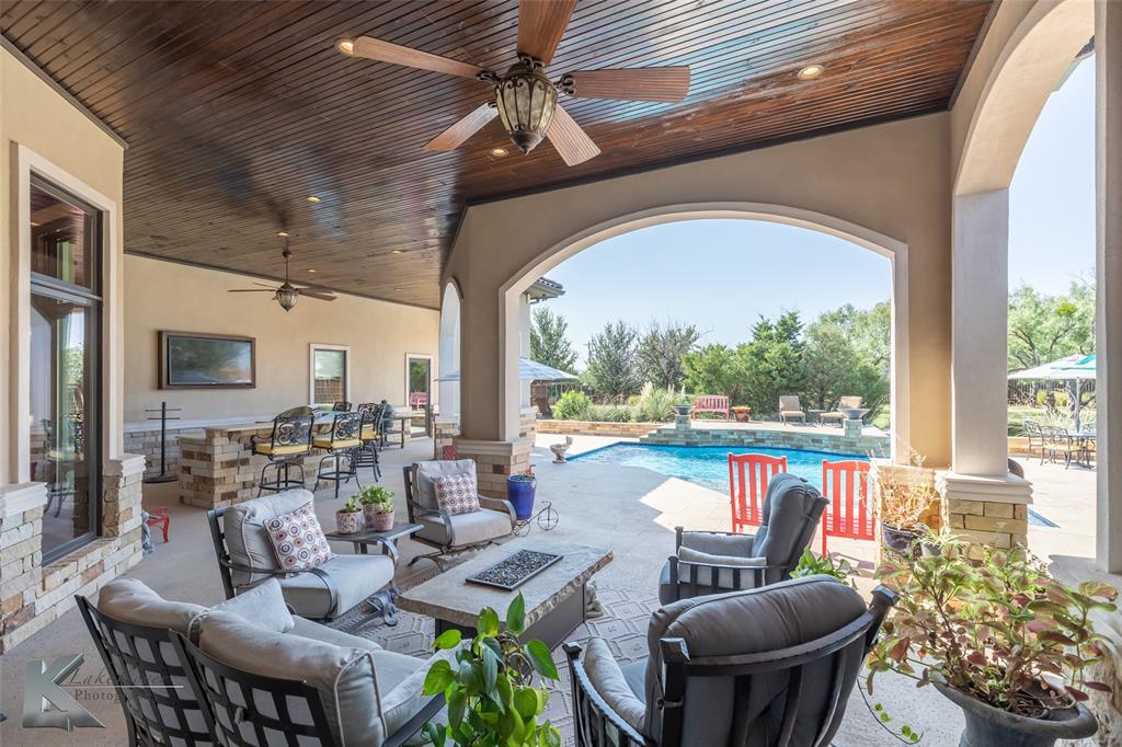 Experience luxury living in Abilene’s premier gated community, Vaquero Ranch. This custom Jon McDonald home sits on 1.3 acres with a circle drive, mature trees, and private gated entry to a 4-car garage. Inside, you’ll find 4 spacious bedrooms with en-suite baths, 2 half baths, and a stunning owner’s retreat featuring a large closet, fireplace, and spa-style bath. The chef’s kitchen offers Wolf appliances, Sub-Zero fridge, and hidden ice maker. Foam insulation throughout, a climate-controlled tornado shelter, and thoughtful touches like a hidden holiday closet set this home apart. Outdoors, enjoy a heated pool, full kitchen, Sunbrite TV, and surround sound for entertaining. A must-see property loaded with details!